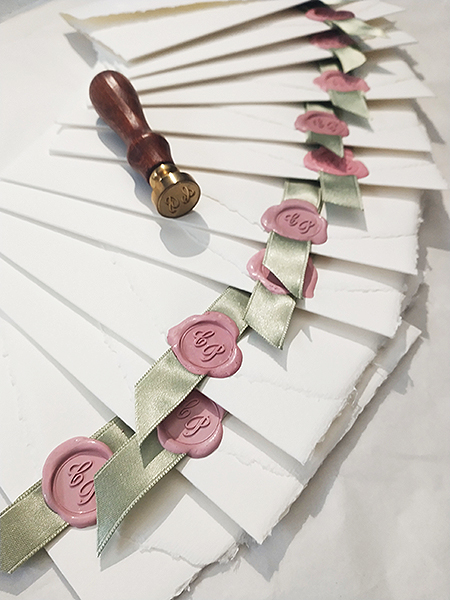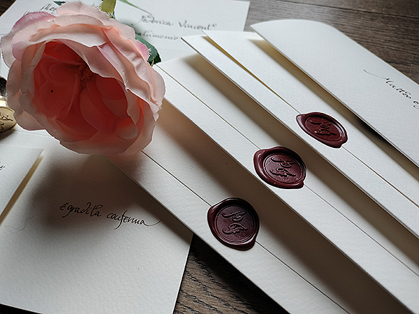 Ogni sigillo viene realizzato a mano, creando combinazioni uniche di colori e forme che diventano la firma degli sposi. Utilizziamo carte speciali ed ecologiche, scelte per armonizzarsi con lo stile dell’evento. Ogni dettaglio è studiato per trasformare la tradizione in un segno distintivo e personale. I sigilli vengono prodotti appositamente su indicazione degli sposi, rendendo ogni creazione irripetibile.